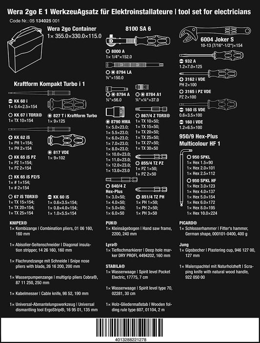 Electrician's tool set 73 pieces Wera 2go E1 ref.134025
