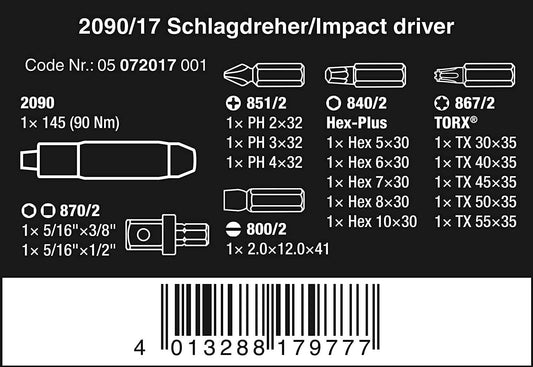 Impact Screwdriver Set 90Nm 17 pieces 2090/17 Wera 072017
