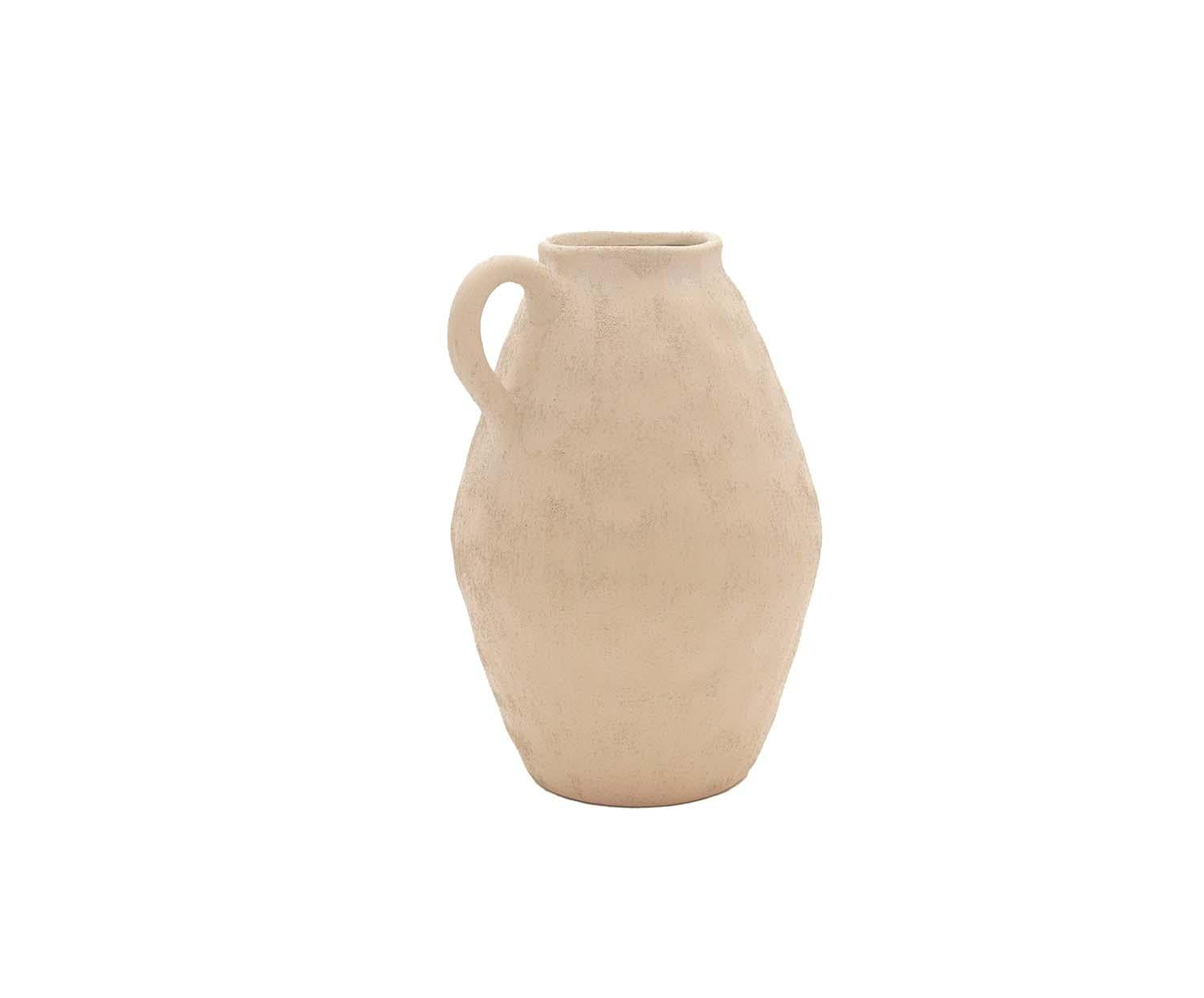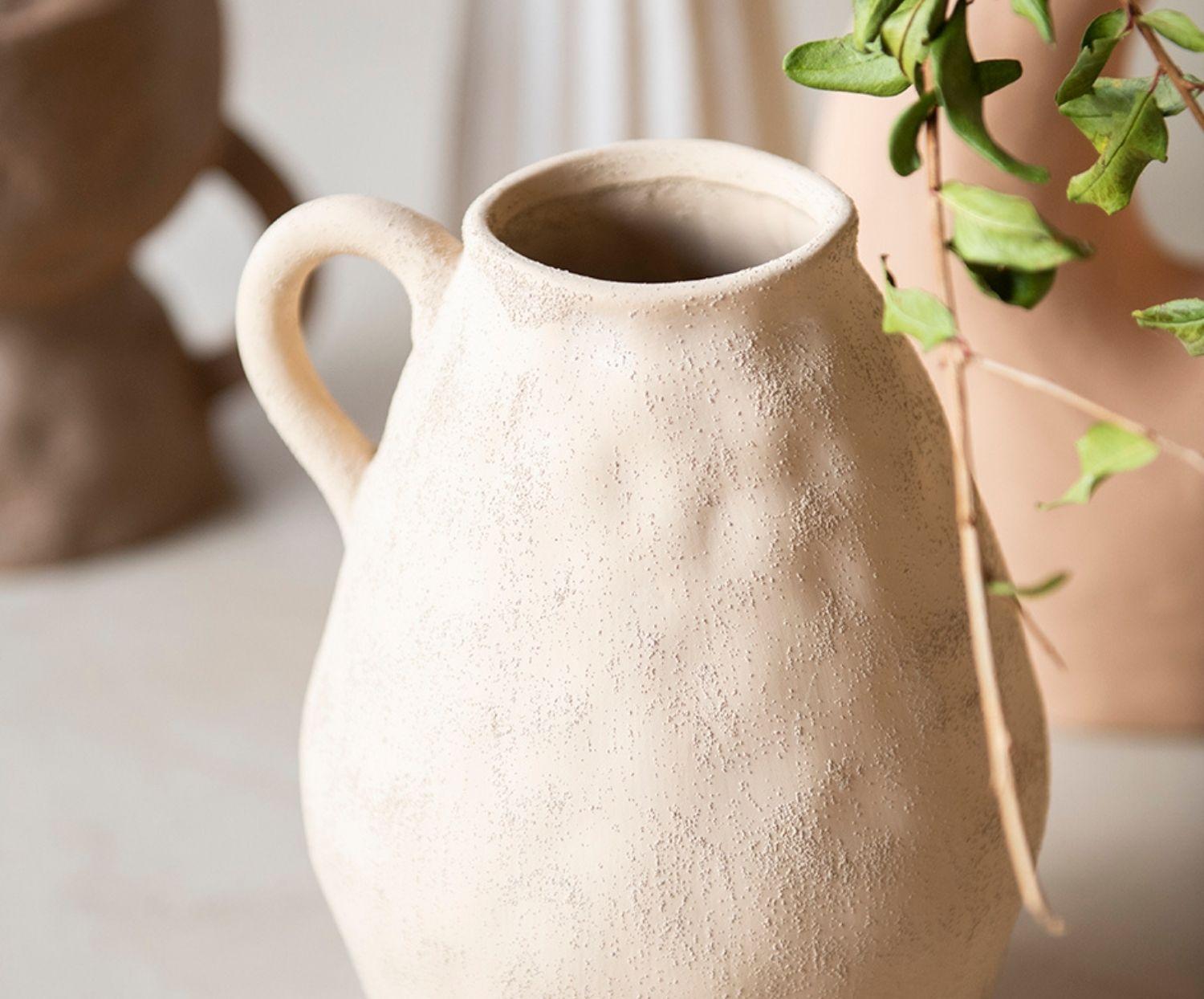 Jarrón decorativo de gres en tono beige, de estética natural y líneas atemporales. Su diseño sobrio y versátil aporta equilibrio y calidez a distintos ambientes decorativos. El acabado en gres realza su carácter artesanal y añade una sutil textura. Gracias a su color neutro, se integra fácilmente en espacios mediterráneos, contemporáneos o minimalistas, tanto como pieza protagonista como combinada con otros elementos.