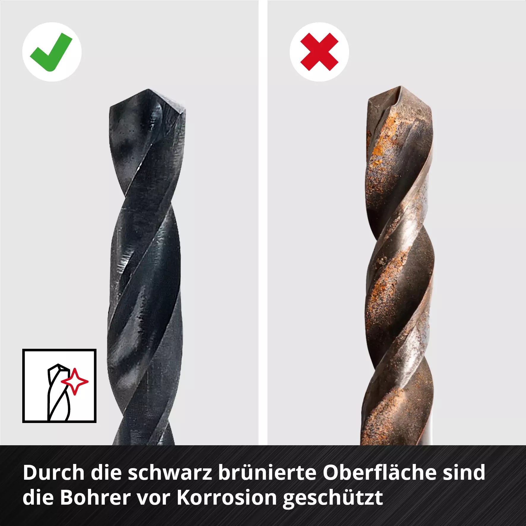 • Acabado negro bruñido que proporciona protección contra la corrosión, prolongando la vida útil de las brocas.