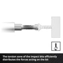 • 4 puntas de impacto de 50 mm con vástago E 6.3, también en acero S2 fosfatado al manganeso, ideales para aplicaciones que requieren mayor alcance.