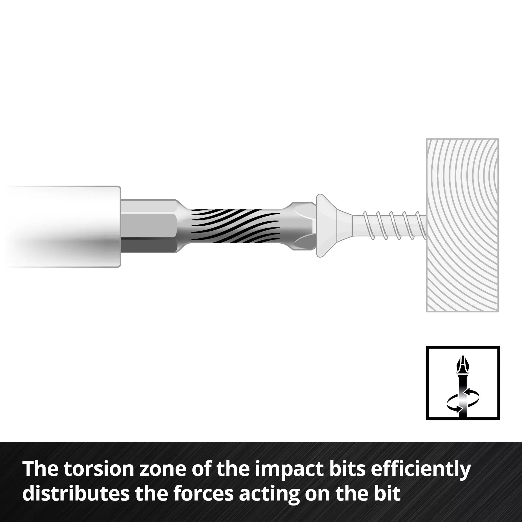 • 32 puntas de impacto de 25 mm con vástago C 6.3, fabricadas en acero S2 fosfatado al manganeso, que ofrecen alta durabilidad y resistencia al desgaste.