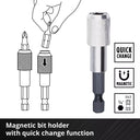 - 1 portapuntas de cambio rápido de 60 mm, con una funda metálica, vástago E 6.3 de acero al carbono y un potente imán que facilita el cambio rápido y seguro de las puntas.