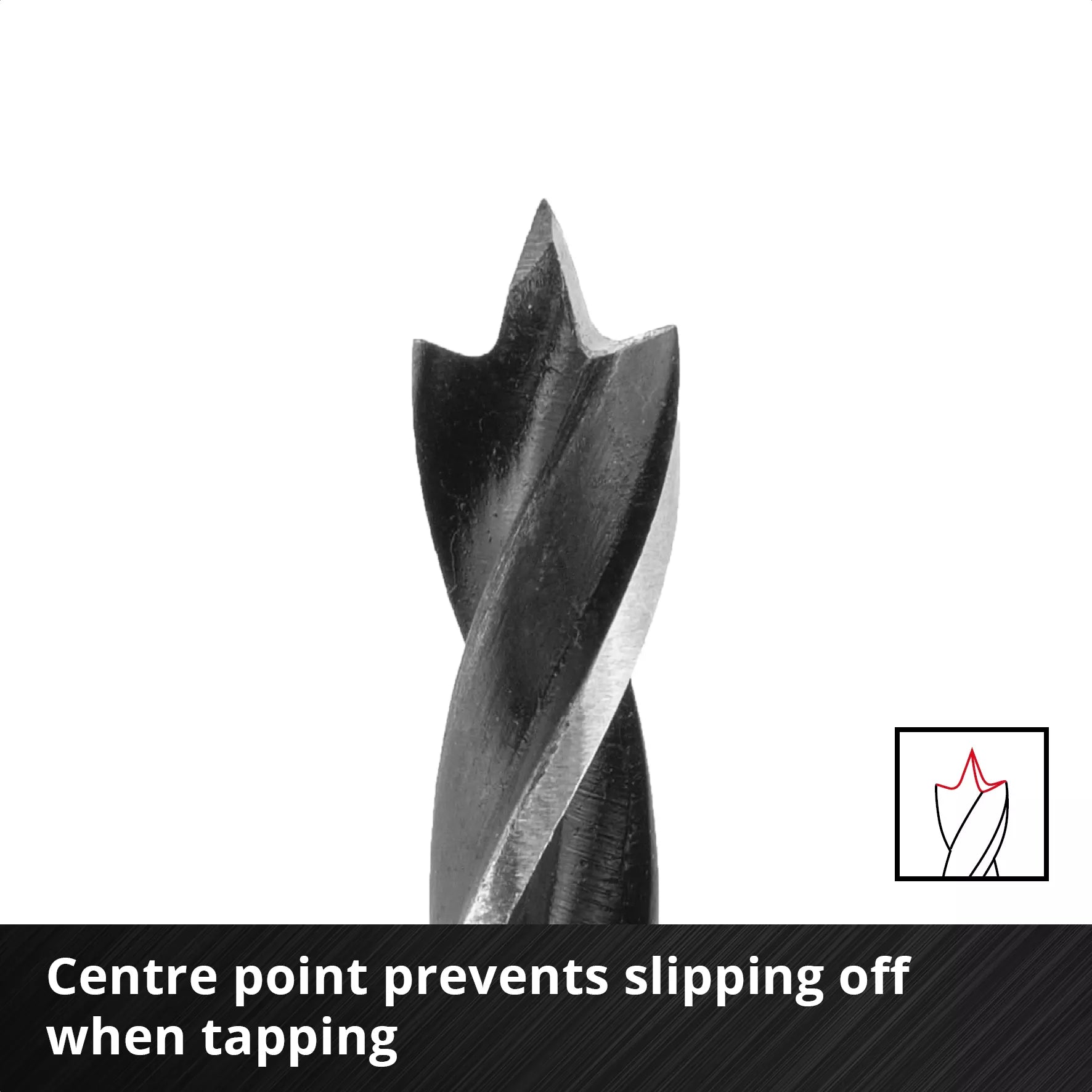 • 3 brocas para madera de 4, 5 y 6 mm, fabricadas en acero C45 con vástago E 6.3 y acabado negro bruñido.