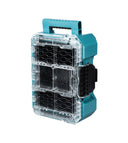 El organizador compacto profundo MAKTRAK forma parte del sistema de almacenamiento modular MAKTRAK. Las conexiones rápidas de los rieles permiten crear un conjunto de cajas de herramientas que se adapte a sus necesidades.