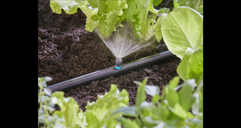 Gardena's 90º sprinkler allows plants to be watered reliably, even in the corners and edges of beds. The Micro-Drip-System component provides your vegetable and flower beds with a fine spray over a 90° area, ideally from the corner of the bed.