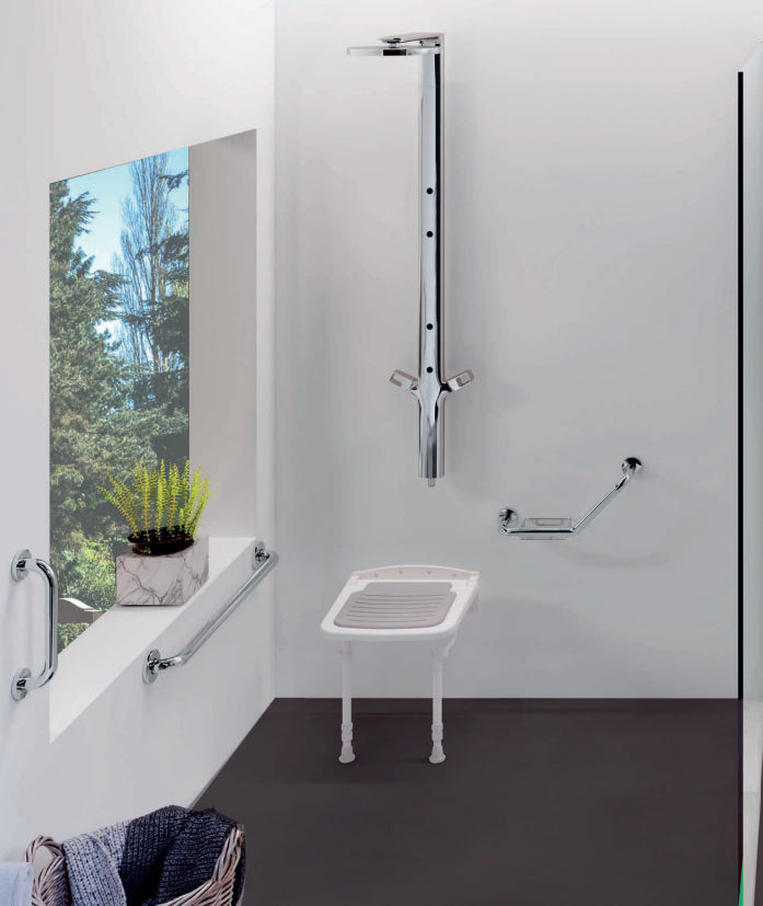 Handle to help with bathroom tasks such as getting up, sitting down or simply for stability when undressing. Made of brass, this material gives it high resistance to water and stretching.