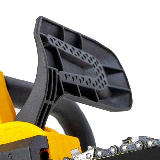 - Includes safety switch and electric chain brake (by disconnecting the engine). Its ergonomic handle and the position of the battery make it a completely balanced machine, including for pruning tasks.