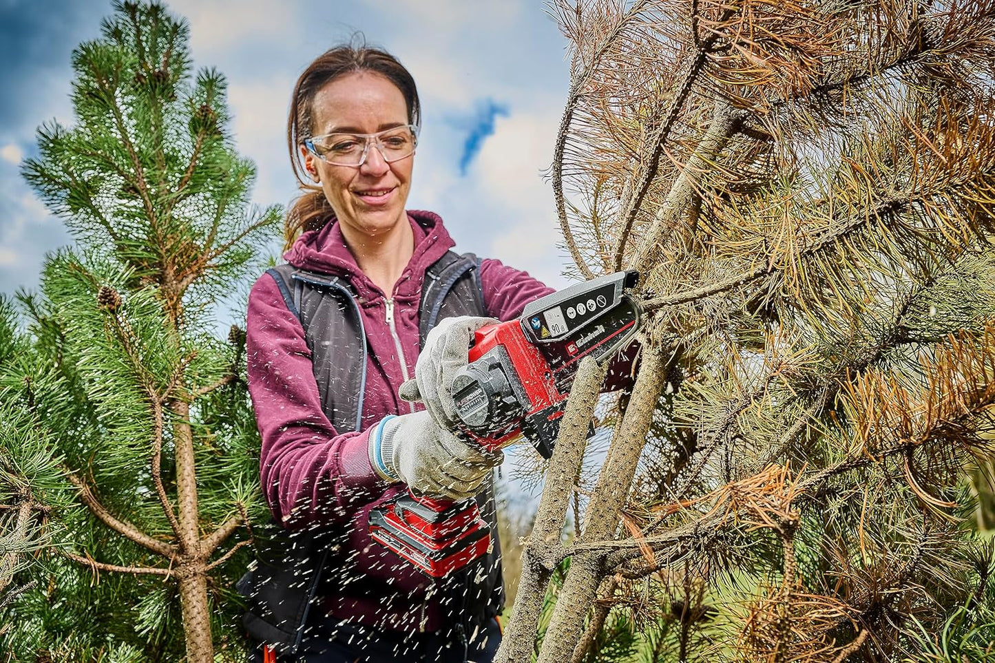 - The foldable chain cover ensures safety when working with the battery-powered branch chainsaw. To protect the bar, a bar cover is included to store the saw.