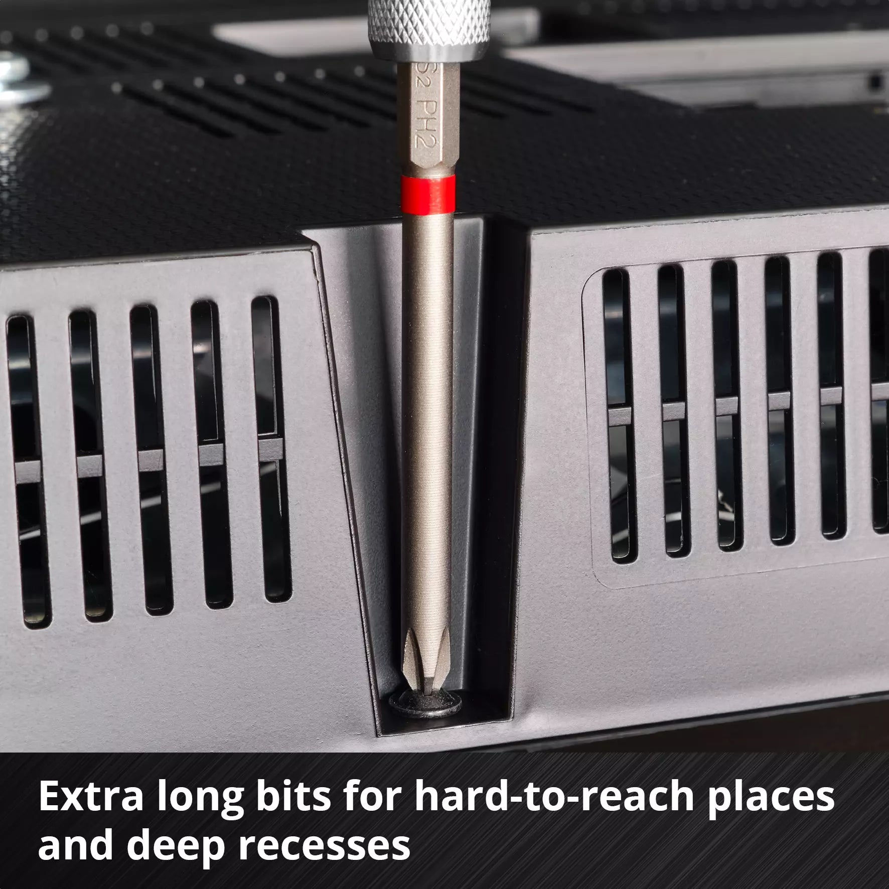 The Einhell 49118973 M-CASE LS 16-piece Long Bit Set is a professional set designed to meet various screwdriving needs in DIY projects and professional applications.