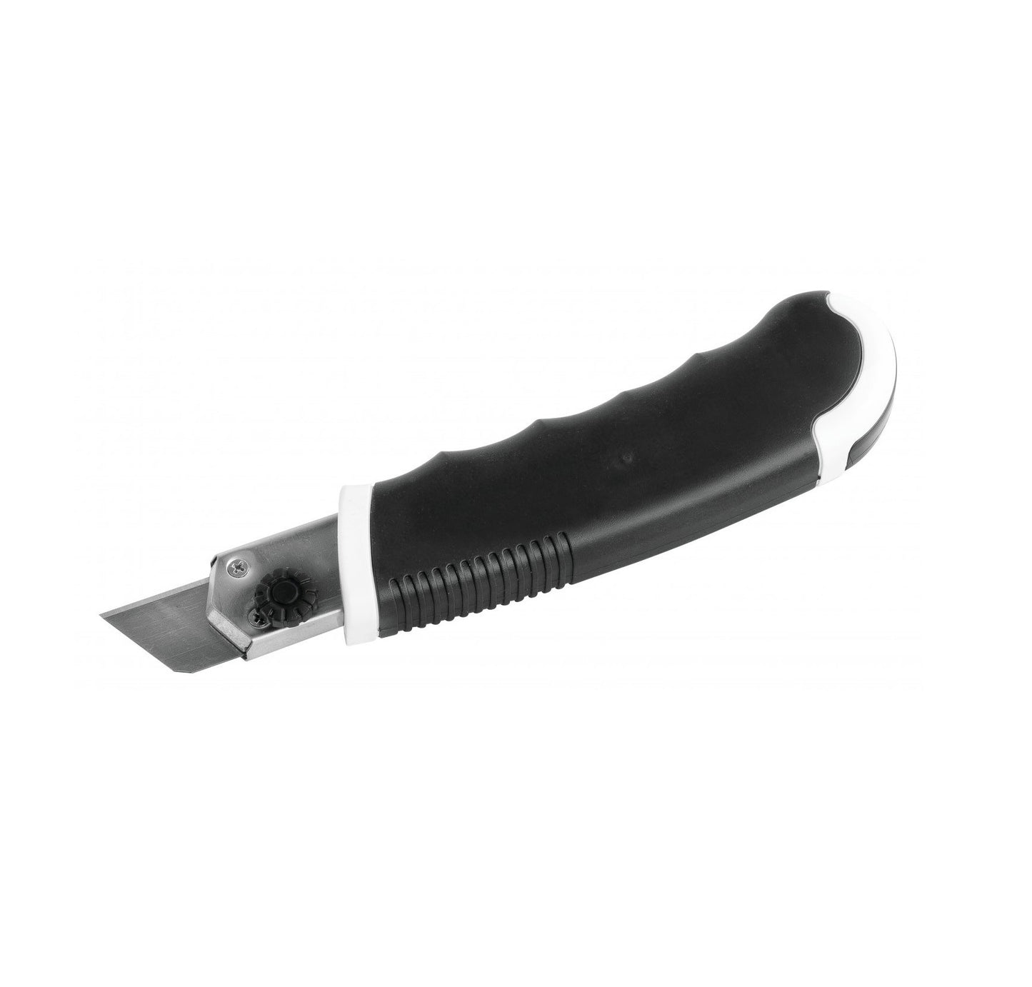 Gypsum board cutter with reinforced blade, suitable for cutting plasterboard - Detachable blade 25 mm wide and 0.7 mm thick - Blade locking via safety wheel on the head - Bi-material body - Supplied with 2 replacement sheets Counter display supplied in packaging of 12 pieces.