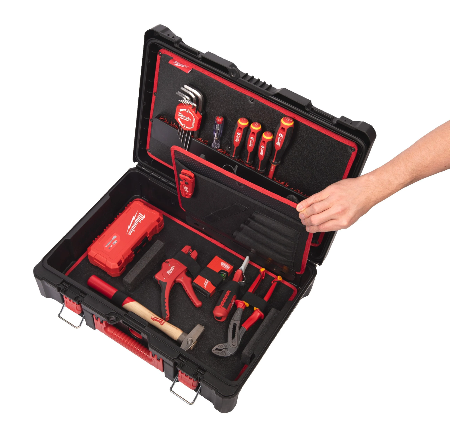 The Milwaukee PACKOUT™ 62pcs Electrician's Set (ref. 4932499466) is a complete hand tool kit designed specifically for professional electricians. It includes a variety of essential tools stored in a rugged PACKOUT™ case, offering durability and protection on the jobsite.