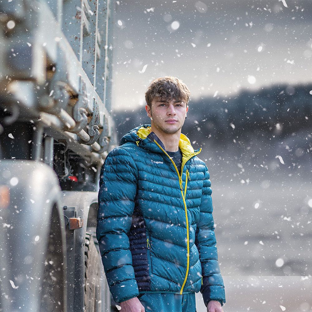 Winter jacket with light compressible padding, windproof and insulating, with adjustable hood and pockets. Work down jacket ideal for the winter season.