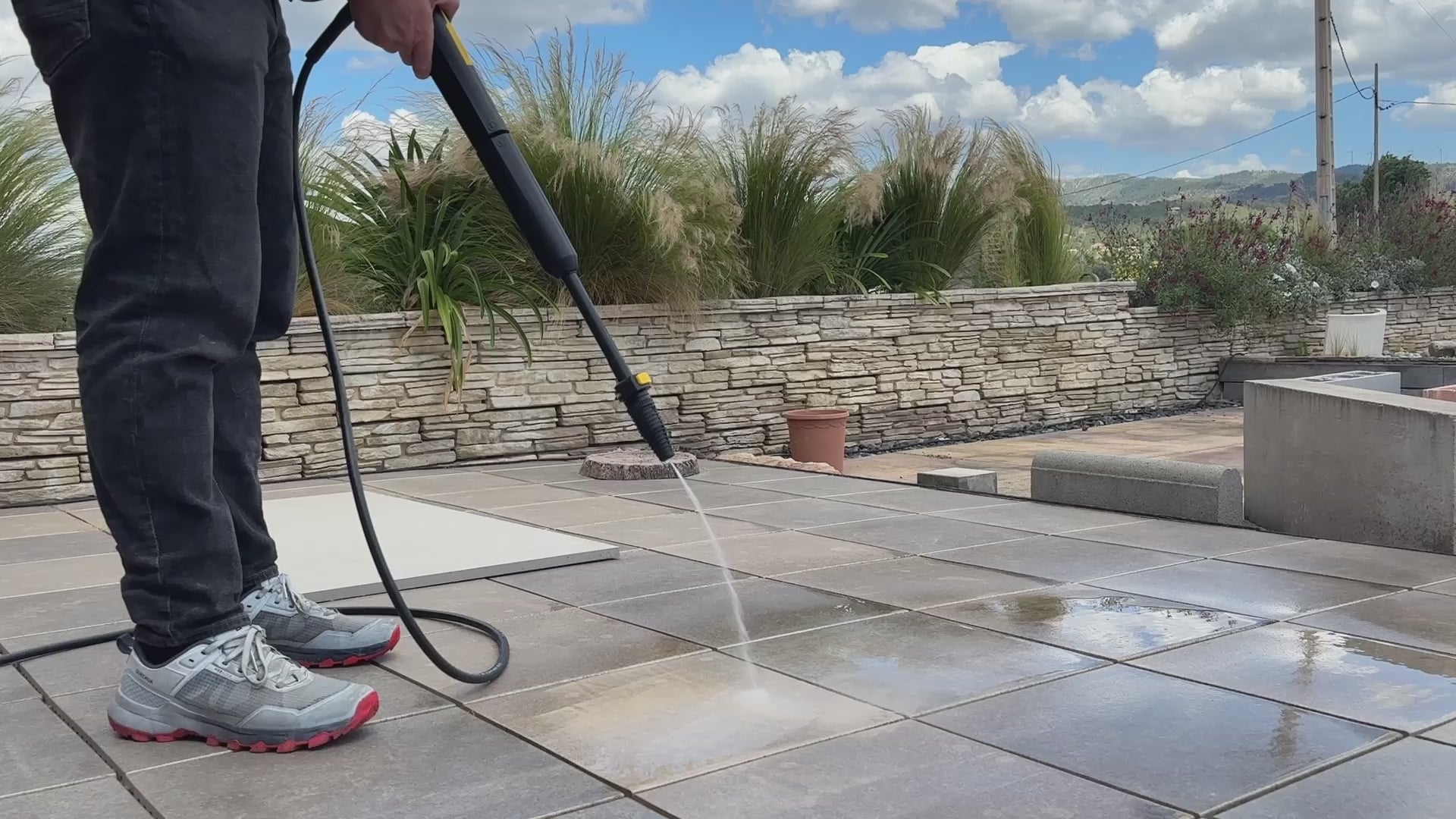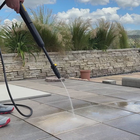 Ideal pressure washer for cleaning stubborn dirt present on medium-sized exterior domestic surfaces, gates, benches, garden furniture and tools, cars, bicycles, steps and swimming pools.
