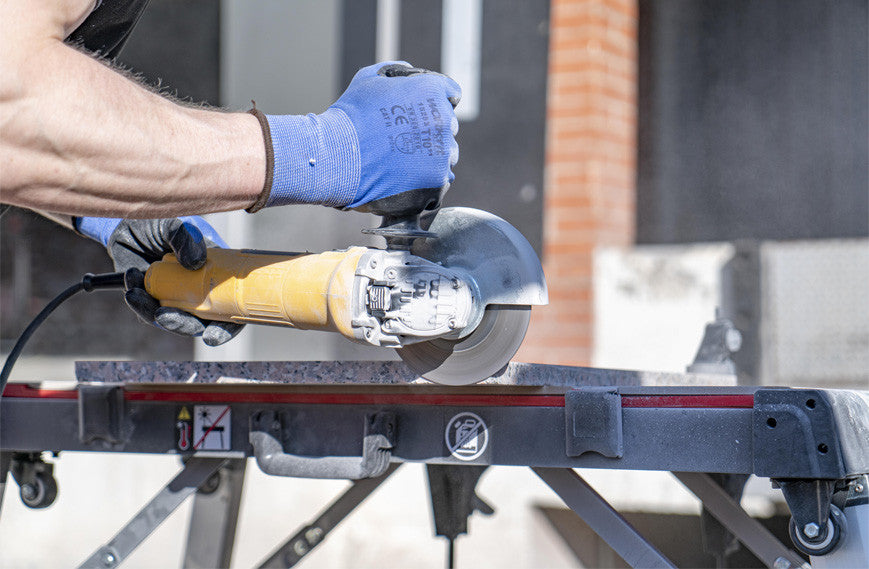 The special alloy of the diamond band of the TGS blade allows straight cutting and 45º cutting (miters). Its capacity is limited, solely and exclusively, to retouching the final finishes of the cut made (small breaks, chips or rectifying small deviations).
